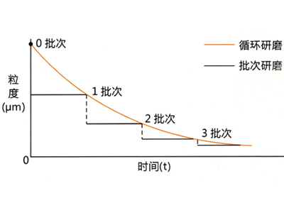 ![]() 相比傳統磨機,即使在相同的平均粒徑,它可以得到集中的粒度分布。 |