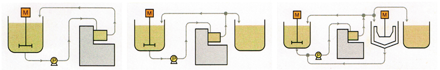 ![]() 循環操作只需一個或兩個攪拌桶實現循環砂磨,而且攪拌桶內粗顆粒會快速沉淀而優科學入砂磨腔砂磨。 |